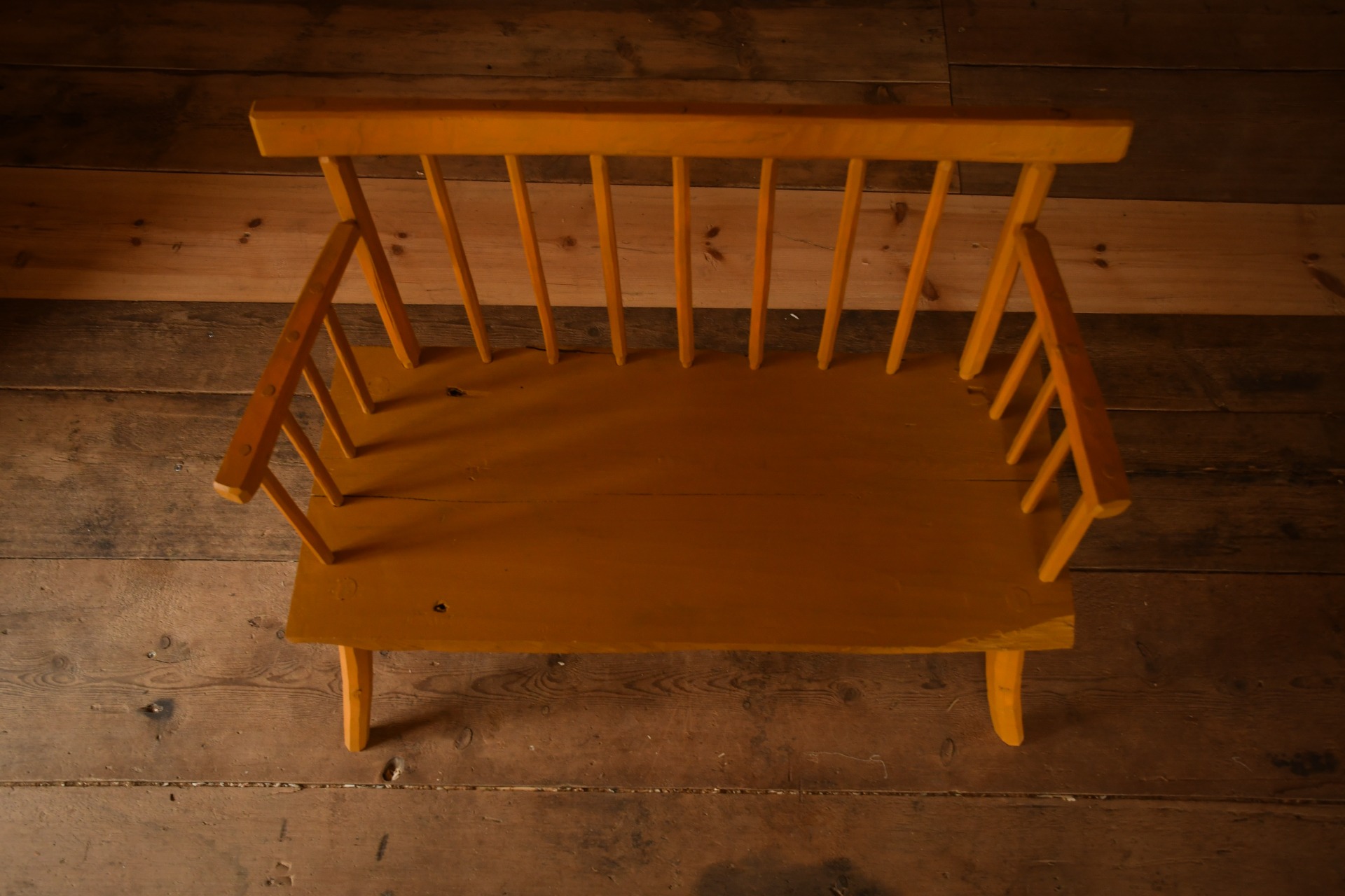 På slöjdsalongen 2025, som pågår nu och fram till 19 oktober, på Länsmuseet Gävleborg har jag med denna soffa. Den är gjord av återbrukat gammalt furugolv och lite björk i benen. Alla sammanfogningar är gjorda med tappar och tapphål. Den är målad med guldockra linoljefärg.