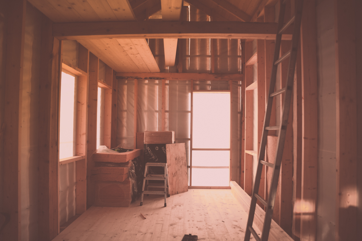 Golv börjar komma på plats i "Flugbindningsstugan". Det blir ett loft.