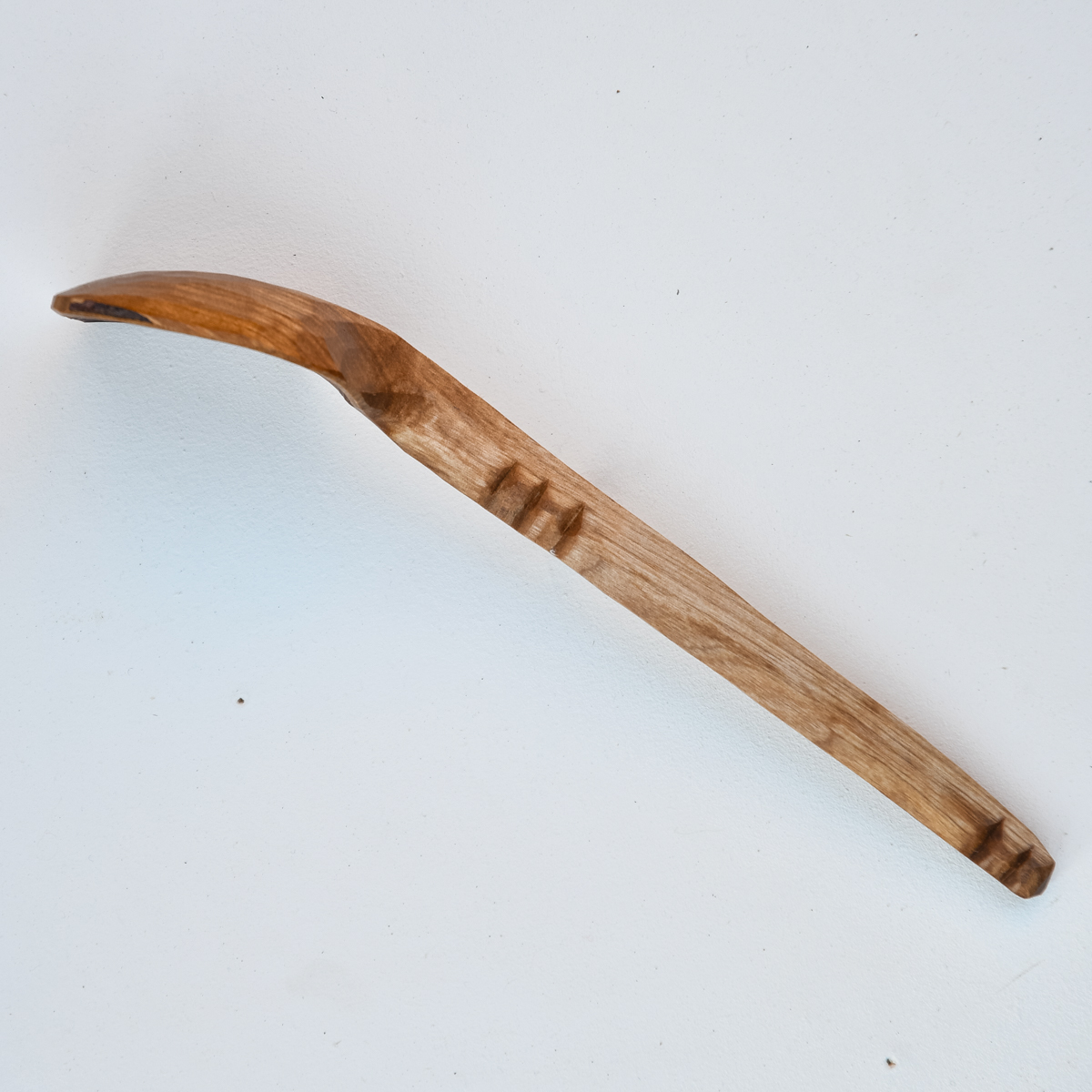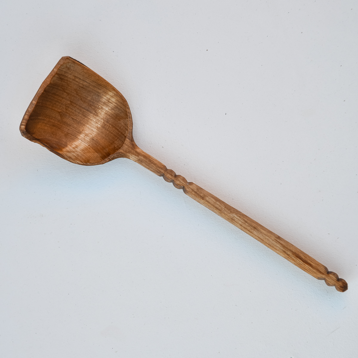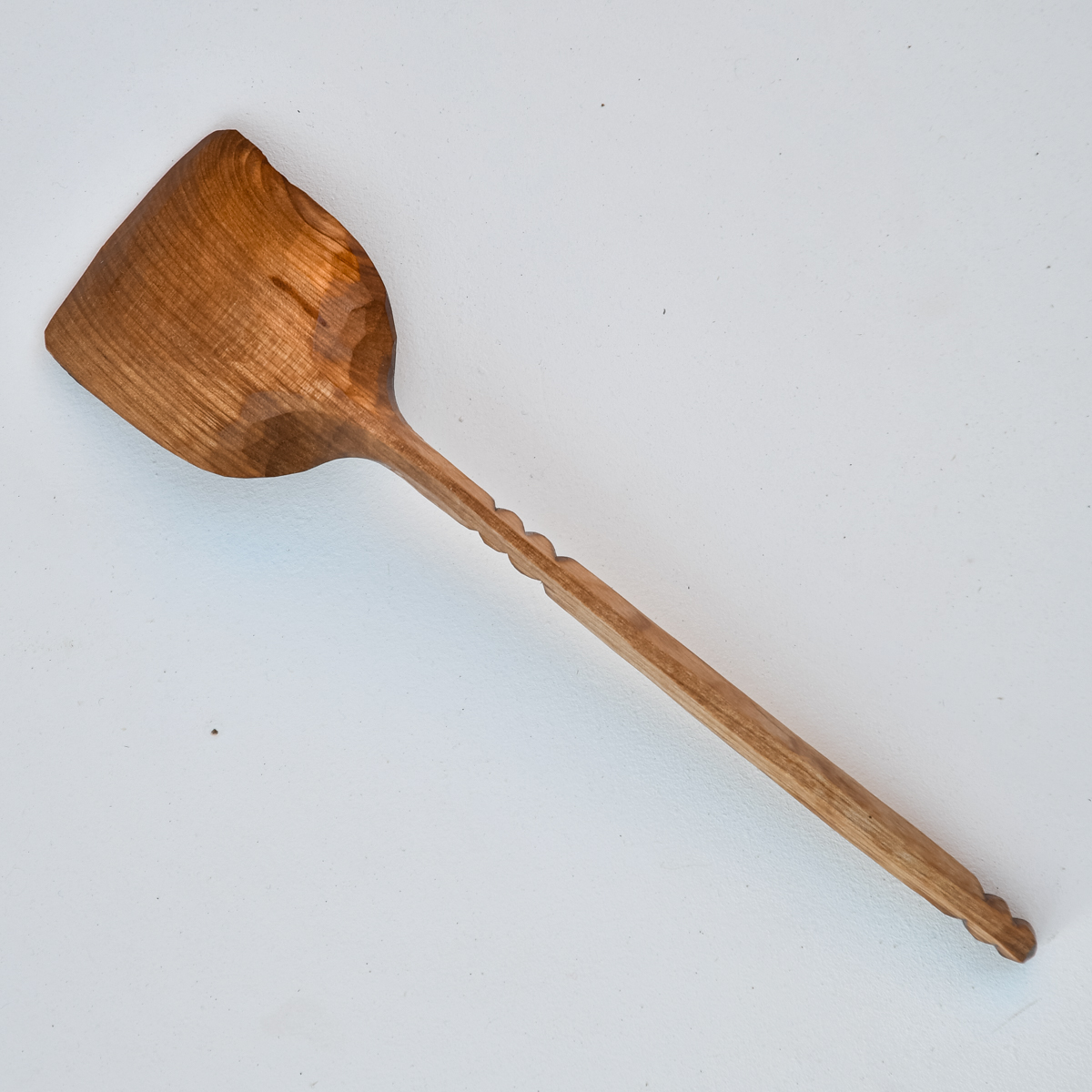 Ytan är täljd, inte slipad, vilket gör att redskapen inte får någon fiberresning vid kontakt med vatten. Den skurna ytan ger också en genuin, handgjord känsla och med tiden en vacker patina.
