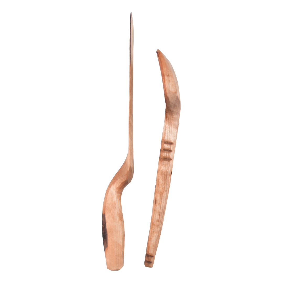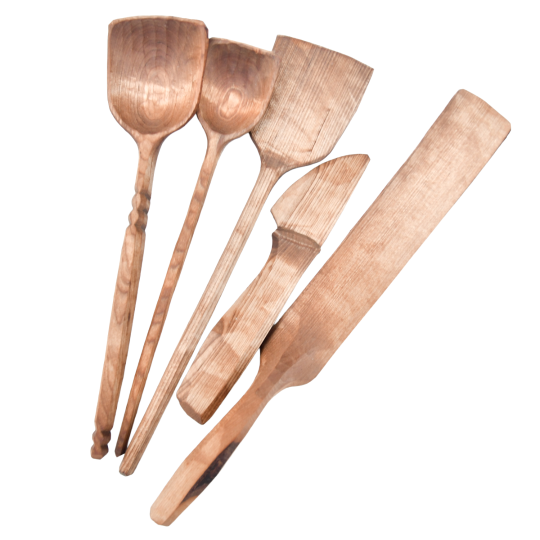 Alla set är individuellt formgivna och helt handgjorda. Redskapen är tillverkade av färsk björk, torkade och värmebehandlade för att få en mörkare färg, samt behandlade med kallpressad linolja utan tillsatser.